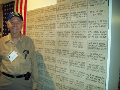 Frank Beadle by his tribute brick at the 35th Infantry Division Museum |