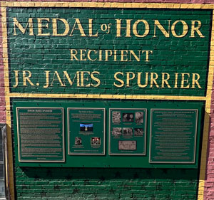 James Ira Spurrier, Jr., son of James Ira Sr. and Ruby Lee (Nuckles) Spurrier, was born December 14, 1944 in Castlewood, Virginia. He incorrectly listed his name on the enlistment paperwork when he volunteered for the Army September 25, 1940, and as a result was known throughout his Army career as Junior J Spurrier. He was sent to the Pacific Theater in April 1942 and fought there until he was wounded in New Guinea during late 1943. After returning to the U.S. to recuperate, he was sent to the ETO at his own request in June 1944. Junior J Spurrier joined Company G, 134th Infantry Regiment from the 86th Replacement Battalion July 19 and was promoted from Private to Staff Sergeant, Squad Leader on July 26, 1944. He was wounded in action September 21, 1944. According to the Aid Station report, he received shrapnel wounds to both hands, but he remained on duty. He suffered a blast injury December 9 and returned to duty December 20, 1944. On April 24, 1945, he was transferred to Company K, 134th Infantry Regiment and returned to the United States a short time later. He was discharged from the U.S. Army on June 19, 1945. Staff Sergeant Junior J Spurrier was awarded our nation's 2 highest military decorations for valor, the Medal of Honor and the Distinguished Service Cross. He died February 25, 1984 and is buried at Mountain Home National Cemetery, Johnson City, Tennessee.