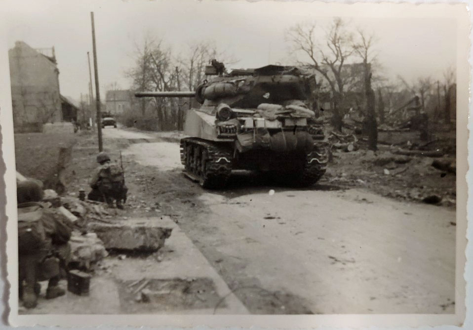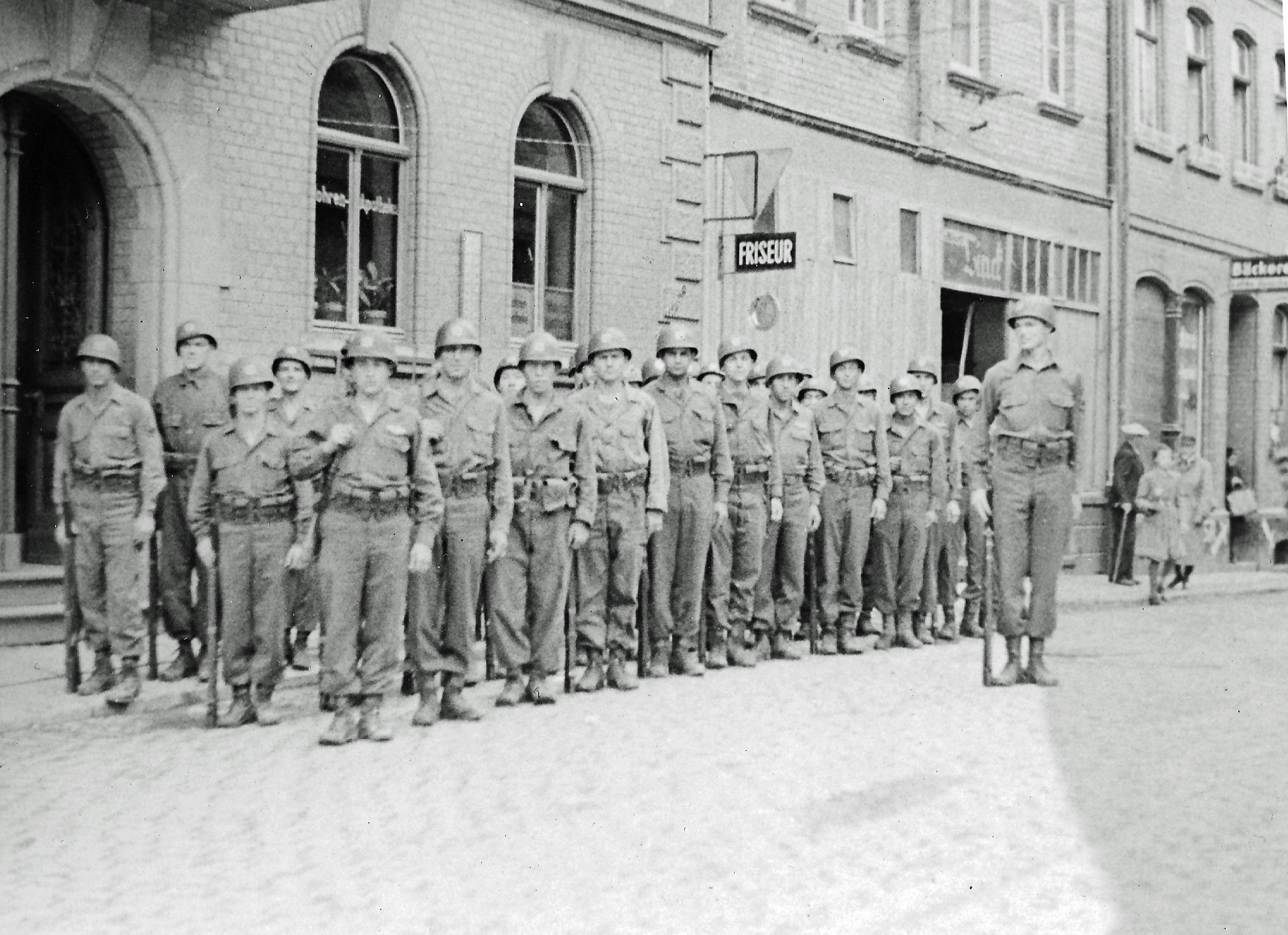 They entered combat on July 11, 1944 in the hedgerows north of St Lo before entering the city July 18th. From there they pushed south, crossing the Vire River, and participated in the breakout of the Cotentin Peninsula. They fought off a major enemy counterattack at Mortain, then continued across France, crossing the Moselle river and fighting major battles at Nancy, Chambrey, and Sarreguemines. After a brief rest over Christmas at Metz, France, they were sent to the Ardennes to fight in the Battle of the Bulge. After another brief rest they moved north, attacked across the Roer in February and crossed the Siegfried Line. They reached the Rhine in early March, attacked across the Herne Canal and reached the Ruhr River in early April before moving to Hanover for occupation duty. During the course of the war the 35th Infantry Division, which included the 137th Infantry Regiment, experienced 264 days of combat and participated in 5 Campaigns: Normandy, Northern France, Rhineland, Ardennes-Alsace, and Central Europe.