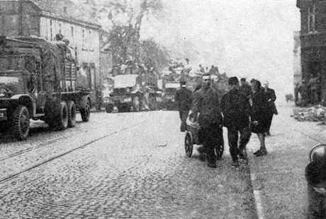 Convoy leaving Herne, German, Ruhr Pocket, on way to Hildesheim