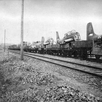 Carload of V-1's and Lieutenant Parkhurst at Tangerhutte, Germany