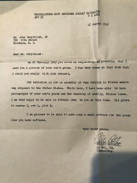Letter to father from Commanding Officer, 60th Engineers