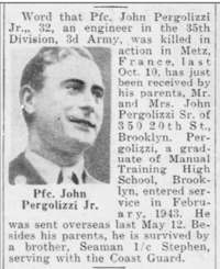Pfc John Pergolizzi Grave, Greenwood Cemetery, Brooklyn NY