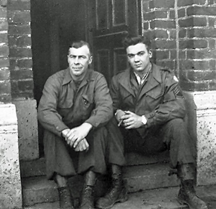 1st Sgt. Burton (right) with "Pop" Seagraves - Belgium 1944 |