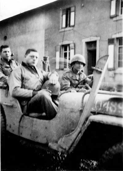 Major General (Captain at the time) Francis S. Greenlief in the front passanger seat, 1st Sgt. Gordon Weeks in the back seat. Driver tentatively identified as S/Sgt John E. (Jack) Manthey.