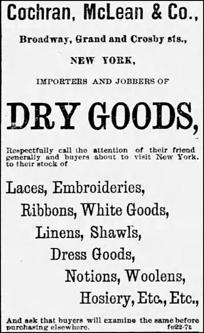 with only the name of the firm and the partners being slightly different. The dry goods importing firm known as Cochran