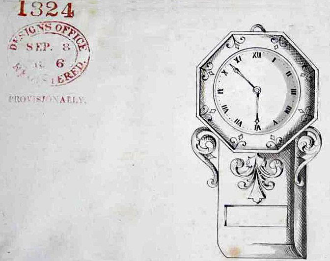 Bakelite clock needle case marked W. Avery & Son Redditch, detail view of the design registration diamond on the bottom marked Day 3, Year 1877 (P) or 1878 (D) and Month illegible (photo courtesy of Rita Reeves). This needle case was registered as provisional design #1324 on September 8, 1876 by Frank S. Kendrick of Birmingham, UK.