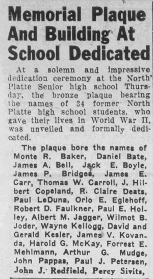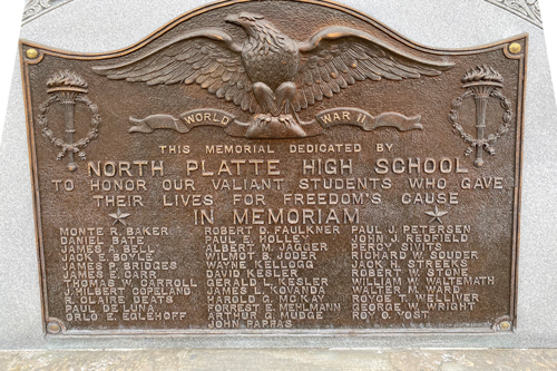 Thanks to Carol Halley of the North Platte, Nebraska School District for this picture of the memorial plaque.