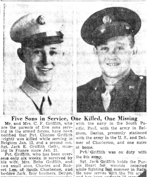 Thanks to Merlin Means for the photos and newspaper article. His mother is Clinton Griffith's cousin.