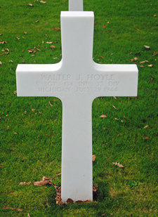 He served in Headquarters Company 3rd Battalion, 134th Infantry Regiment and landed on Omaha Beach, Normandy, France on July 7, 1944. He was promoted from Private First Class to Corporal on July 23, and from Corporal to Staff Sergeant July 27, 1944. S/Sgt Walter J Hoyle was Killed in Action south of St Lo, France on July 29, 1944. He is buried at Normandy American Cemetery, Colleville-sur-Mer, France.