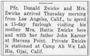 (Gosdeck) Zwicke, was born December 25, 1917 in Wood County, Wisconsin. He