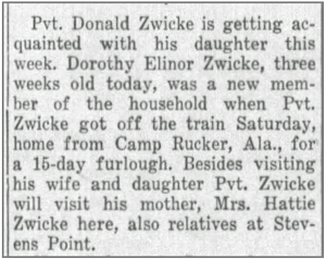 daughter, Dorothy Eleanor Zwicke, born in 1943.