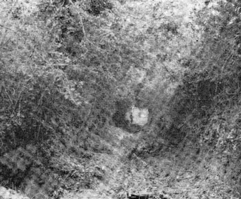 A sunken road bordered by two hedgerows inside the German position. The complete cover permitted freedom of movement within the position and afforded excellent protection against our artillery fire.