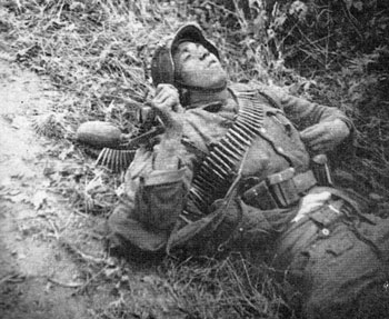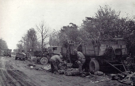Troops examine equipment left behind by the retreating Germans