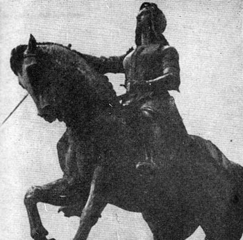 Statue of Jeanne de'Arc of Orleans before she lost her sword in the second battle of Orleans