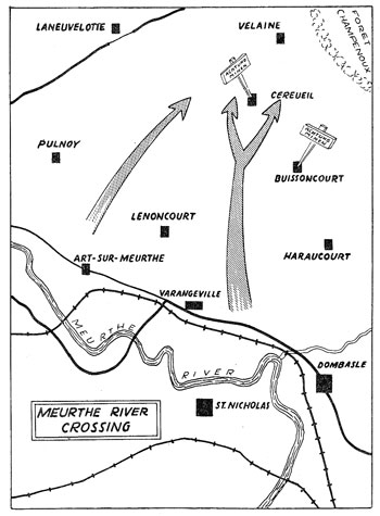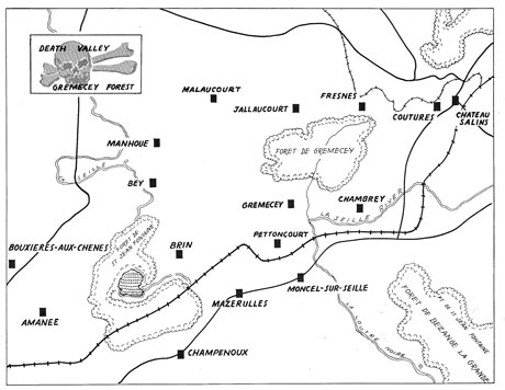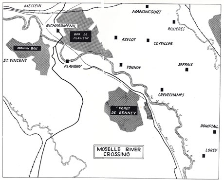 Where the 2nd Battalion dug in along the east bank of the canal at Crevechamps, France, near the Moselle crossing.