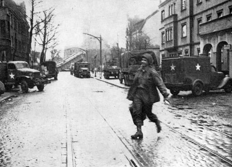 Convoy leaving Herne, German, Ruhr Pocket, on way to Hildesheim