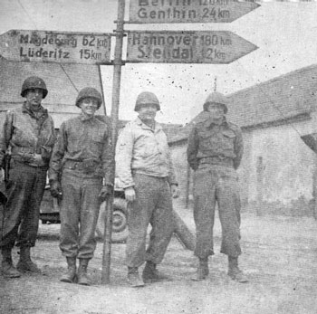 137th Infantrymen before a German bus taken near Stendal, Germany