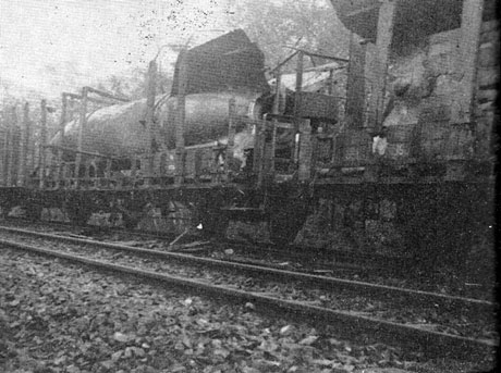 Carload of V-1's and Lieutenant Parkhurst at Tangerhutte, Germany
