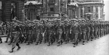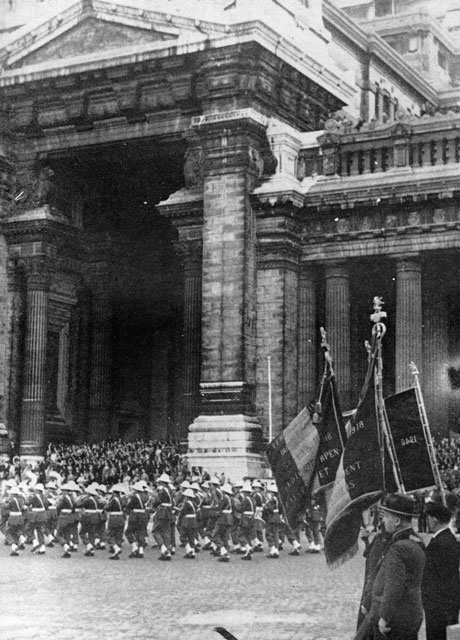 The final Dress Parade passes in review before the Palace of Justice, Brussels, Belgium