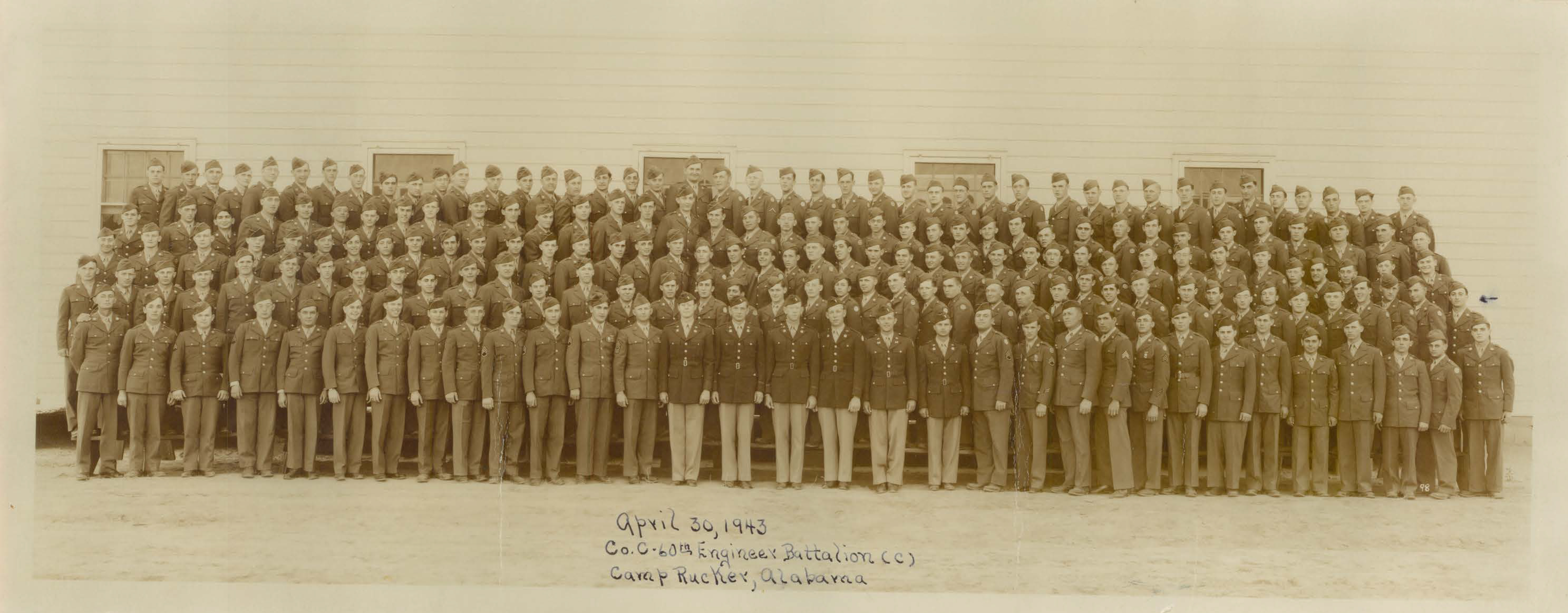 T/Sgt Andrew Scala is on the far right of the 2nd row from the bottom. Charles Lyons is the 16th man from the right in the 2nd row from the bottom. Cpl. Peter P. Polsky is in the 3rd row (middle row) 26th from the left. Vito DiGiovanni is the first man on the left in the 2nd row from the top. Armondo Baglione is in the 3rd row (middle row) 10th from the left. Pfc Robert A. Wilson is in the 2nd row from the top, 4th man from the right. Carl R. Schweinsburg is in the 3rd row (middle row) 11th from the right.