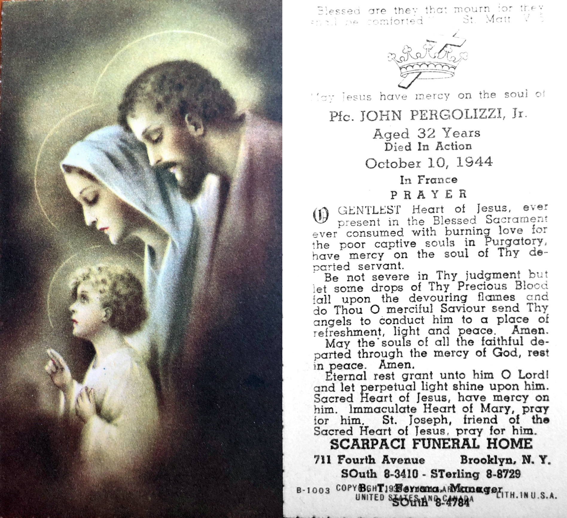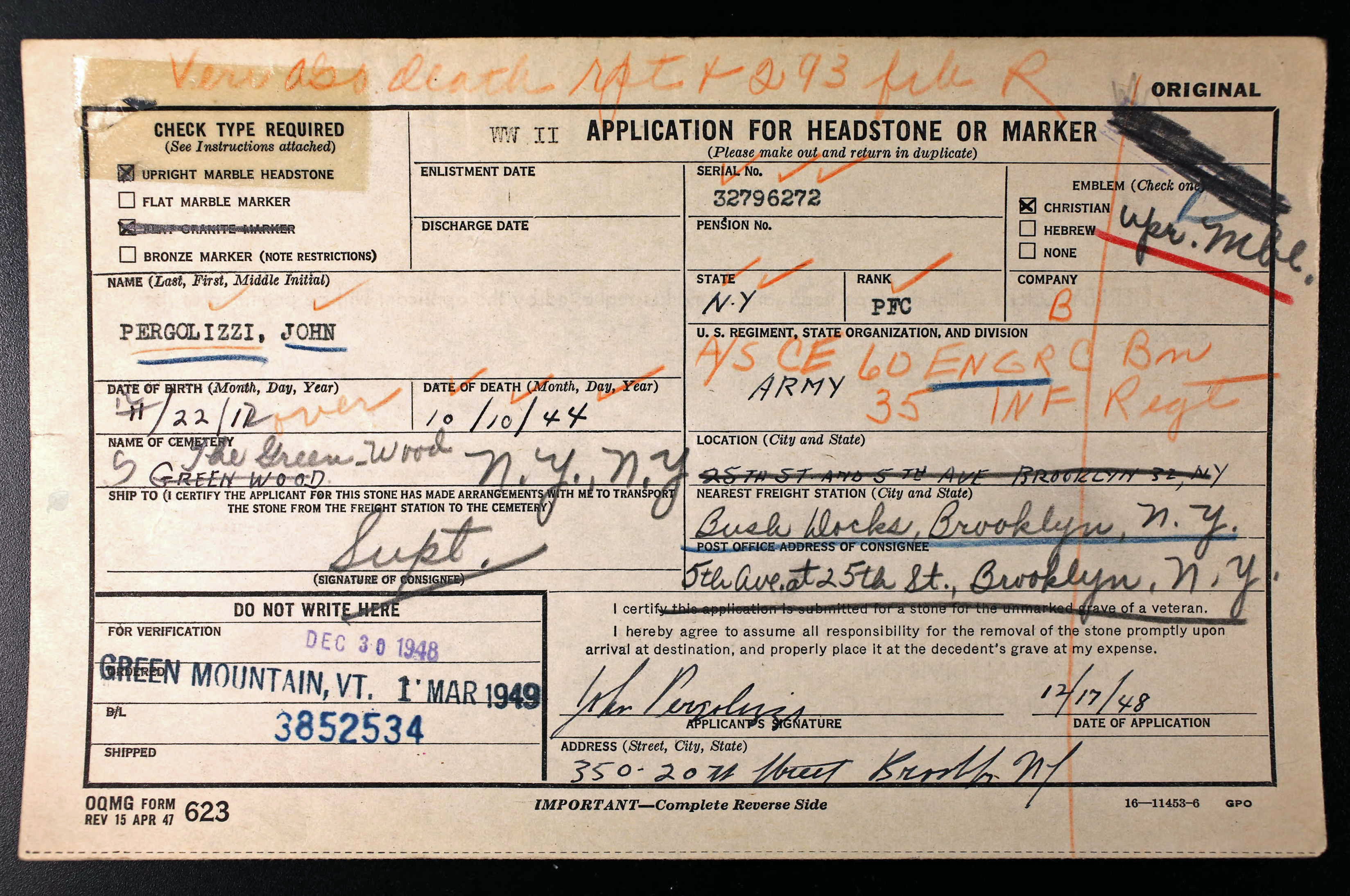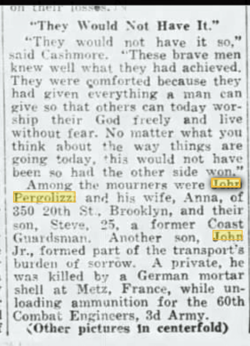 Pfc John Pergolizzi Grave, Greenwood Cemetery, Brooklyn NY