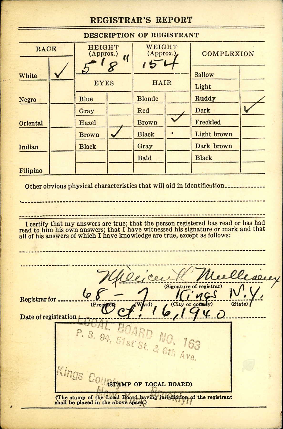 Draft Registration Card, front