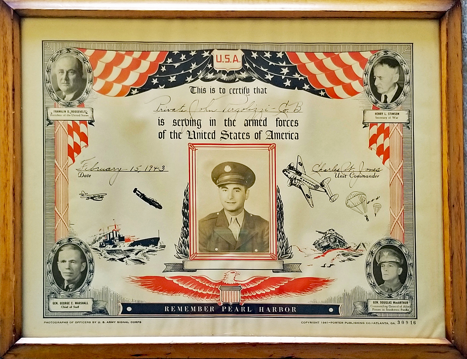 Armed Forces Service Certificate - February 15, 1943