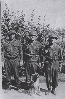 Wright, Abrams and Andrew Scala (right) with his dog Mortain. She was named after the town where he got her. |
