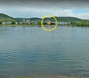 yellow on the west bank is the church at Bad Honningen, Germany.