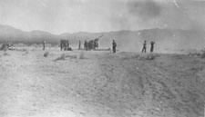 La Jolla, California. On the desert. They just fired one round. Notice the puff of smoke just off the end of the barrel. |