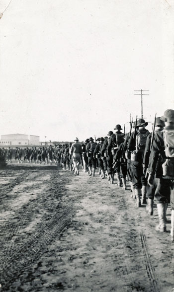 Us fellows marching back from rifle range Camp Wolters, Texas July 1941 |