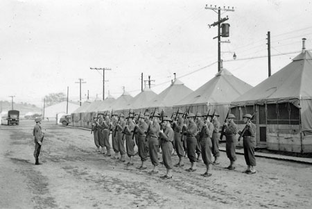"Band Rifle Drill" March 1942, Camp San Luis Obispo, Calif. |
