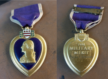 Purple Heart Medal awarded to Lt. Ralph BrennanThanks to Lt. Brennan's niece Mary Grant for this picture of her uncle's Purple Heart |