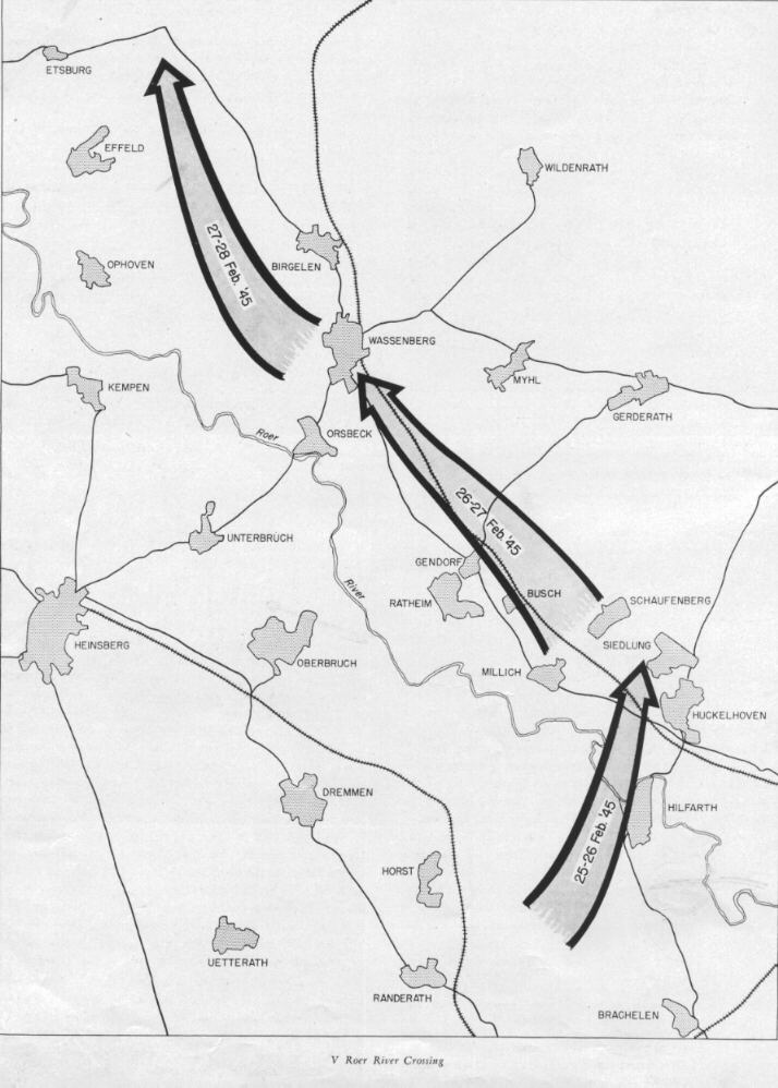 . . . crossed the Roer on a foot bridge and attacked toward Huckelhoven.