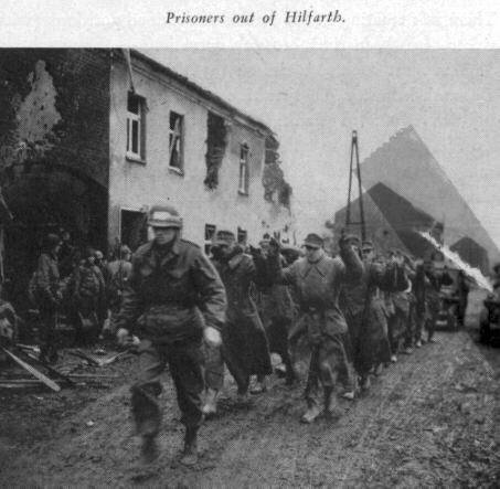 The 2nd Battalion was keeping pace on the left, though road conditions would not permit the use of its tanks, and it cleaned out Doverack, Ratheim, Krickelberg, Vogelsand, Garsbeck, Luchtenberg, Orsbeck, Pletsch. Regimental C.P. advanced to Huckelhoven, and the 1st Battalion, now in reserve, remained in Hilfarth until 1345, when it moved up to Gendorf. A total of 213 prisoners was added to the previous days 68.