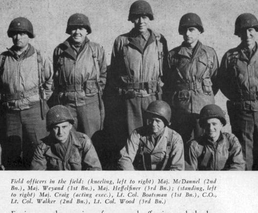 The 1st Battalions difficult mission completed around Fossieux, and reorganization completed, it now was possible to bring Lt. Col. Boatsman, senior battalion commander, back to Regiment to take up his duties as regimental executive officer. Major Dan E. Craig, previously S-3, and, since the evacuation of Colonel Sheppard, acting executive officer took command of the 1st Battalion.