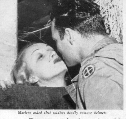 Somber fall weather, with frequent drizzles and perpetual soupy mud had prevailed most of the time since the arrival in this general area, but now a great proportion of the troops could take advantage of the shelter of abandoned French villages and they could give some attention to other activities than the basic problem of keeping alive and defending their positions. There were movies for all troops . . . shower baths . . . passes to Nancy . . . the ceremony in Nancy honoring the regimental commander and the 134th Infantry for the liberation of the city . . . conferences on tank-infantry cooperation . . . Marlene Dietrichs show (and her admonition to the grizzled veterans to kindly remove their steel helmets before applying a kiss) . . . Bing Crosbys appearance . . . Red Cross clubmobiles, with coffee and doughnuts, and jazz records - and American girls . . . and then, the height of escape from warfare, quotas, 40 men and four officers, for passes to Paris.