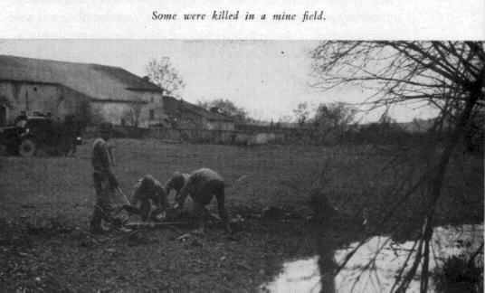 There was the breath of winter in the cold, damp air that afternoon, and buildings began to become more and more of a premium as adjutants sought shelter for their command posts. Announcement that a desirable town had been cleared had the effect of a break in the dam before a swollen river. Immediately a stream of vehicles mostly jeeps would start pouring down the road, and, in such a situation as this when there was but a single town in the immediate regimental zone, the three battalion adjutants Captains Donald Krebsbach of the 1st Battalion, Amato Pescosolido of the 2nd, and O. H. Bruce of the 3rd would hurry in to stake their claims. But this time Captain Abbott of Regimental Headquarters was there too, and that evening the town of Amelecourt found itself burdened with all three battalion C.P.s plus the regimental C.P.! They were dispersed within the town as well as could be, but there was a rather attractive concentration of vehicles and installations here, and it came under heavy German shelling that afternoon and night. Fortunately, damage was light.