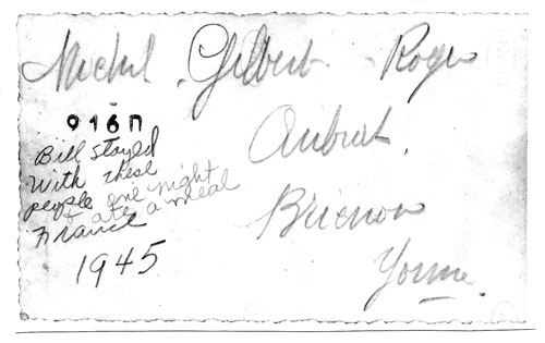Picture of a French family that T/Sgt William Quillen stayed with one night. See the names on the back of the photo.