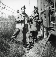 Pfc. Domenic D'Alessandris was born in Patrica, Italy in May 1921. He arrived in Ambridge PA in 1930. Dom left school after the 8th grade to work in the A.M. Byers steel mill. He was inducted into the Army, and on January 1, 1945 he left home for the European Theater of Operations . After stops at Ft. Meade and Camp Kilmer he left New York on the Queen Elizabeth and arrived in Glasgow, Scotland on January 13, 1945. He traveled through Scotland and England to Southhampton, crossed the Channel and reached Le Havre, France on January 16. After a couple of days at a Repo Depot, he traveled to Bastogne, Belgium and join Anti-Tank Company, 134th Infantry Regiment on January 21, 1945. He saw his first action outside of Bastogne.