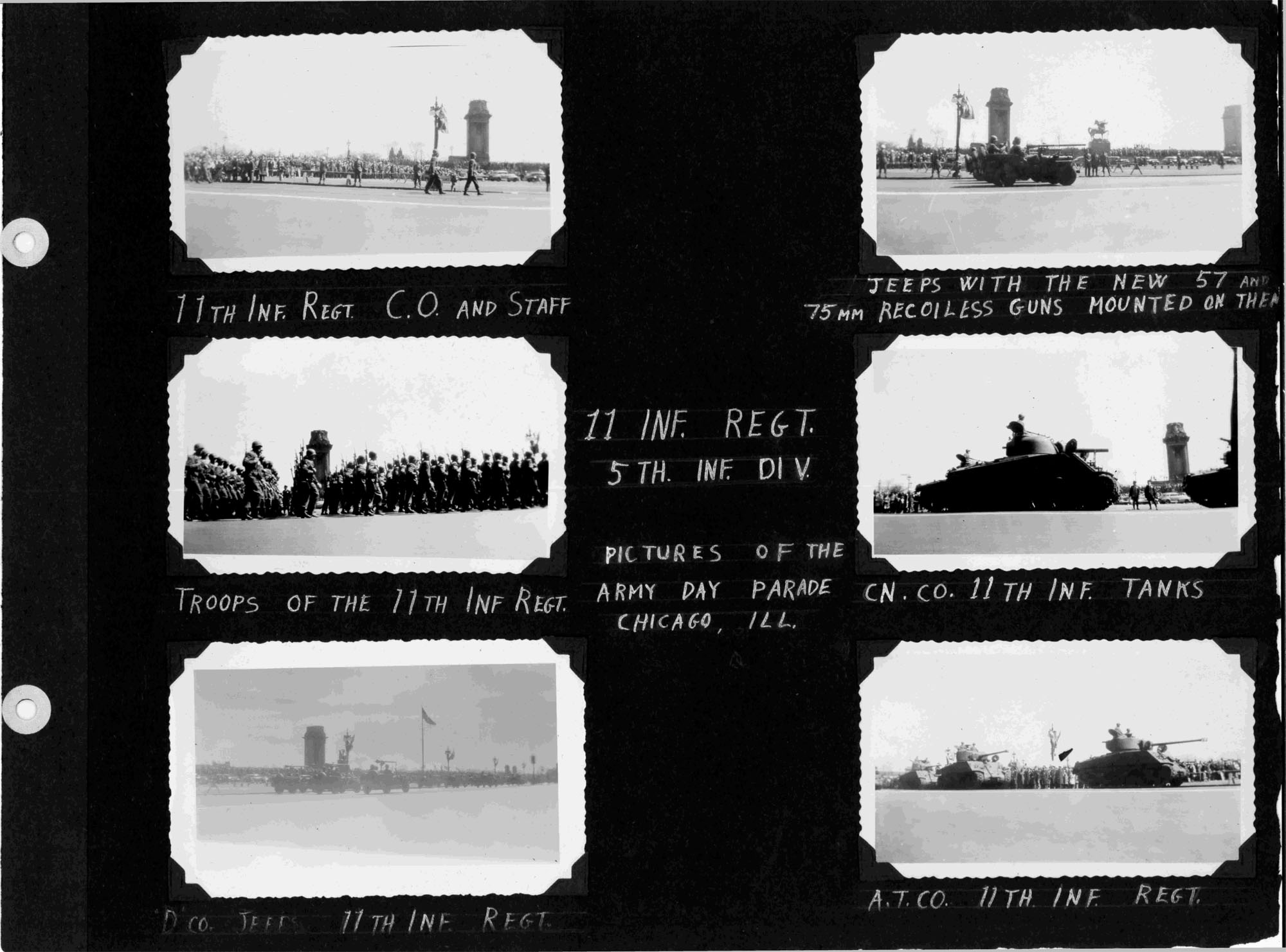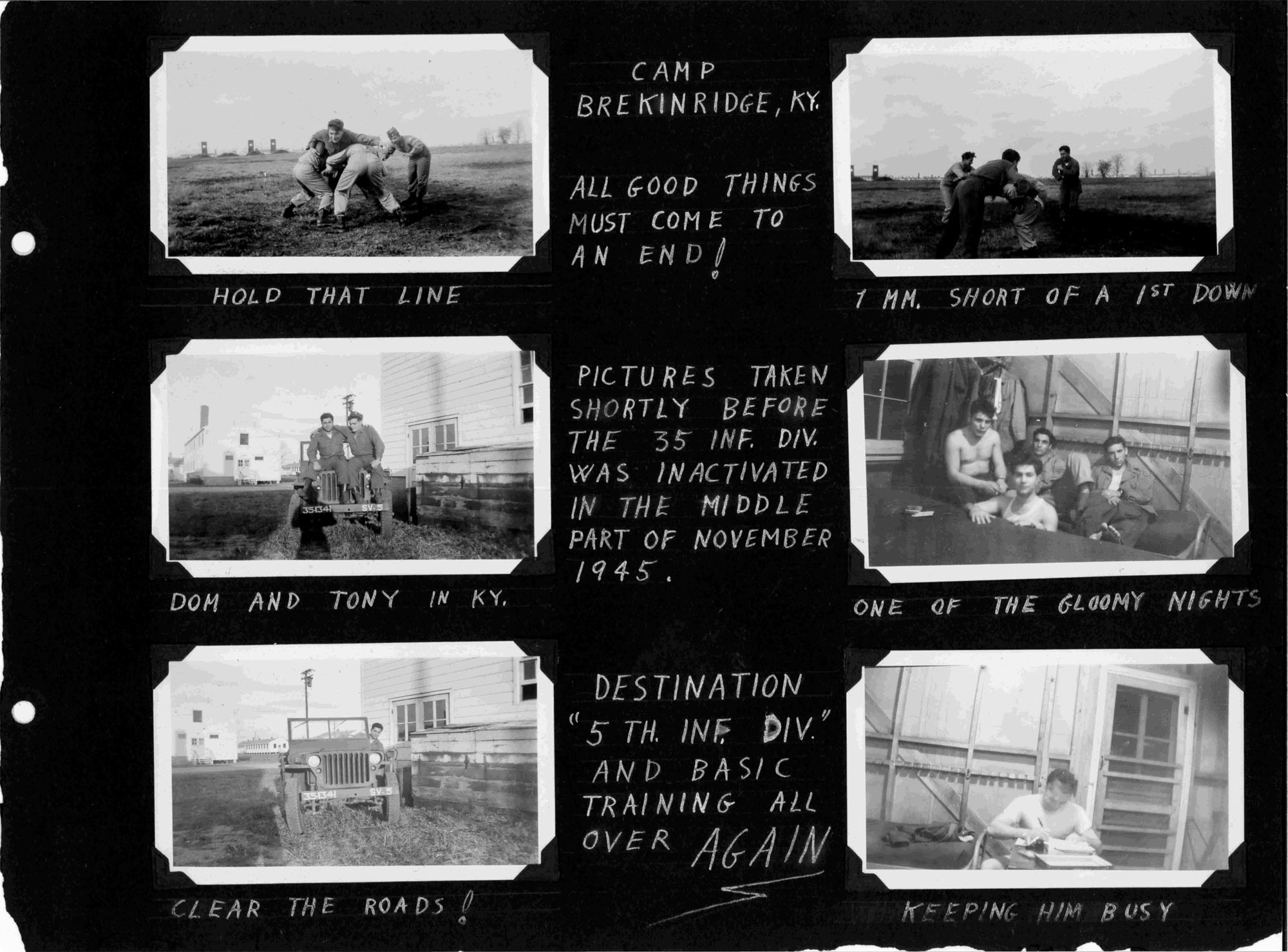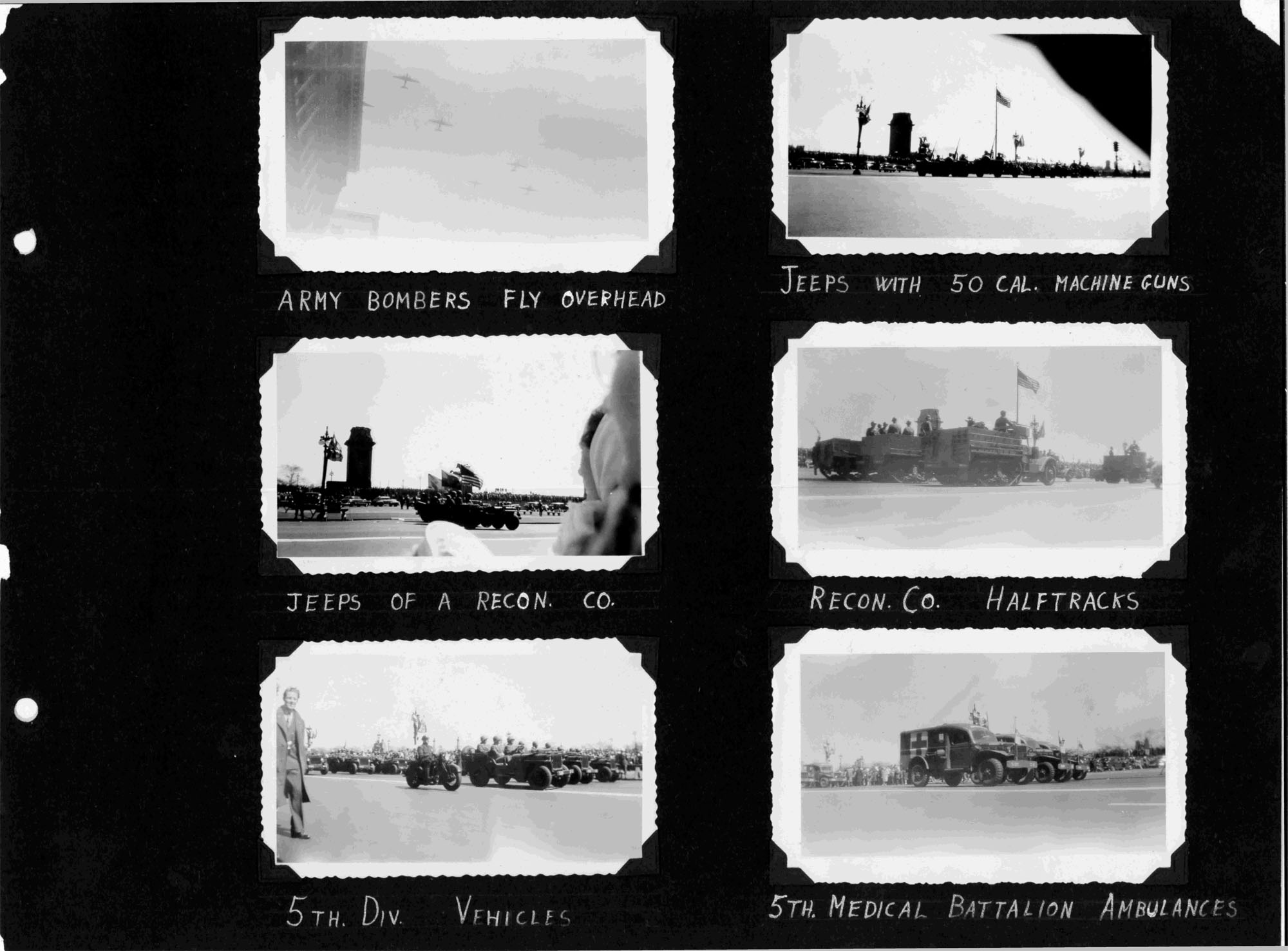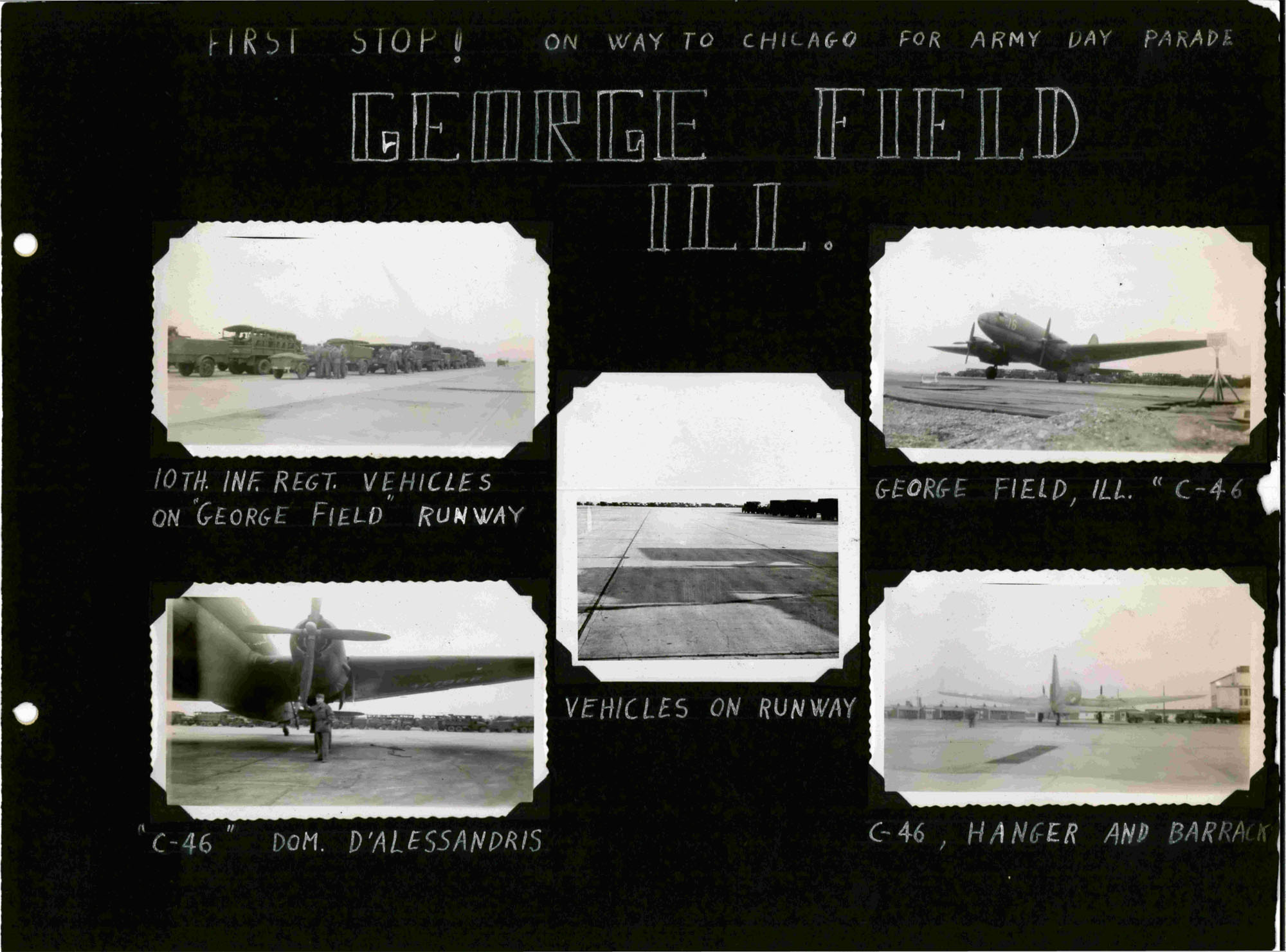 Upon deactivation of the 35th Infantry Division, Pfc. D'Alessandris was transferred to the 5th Infantry Division, attending training at Camp Campbell, KY. In April 1946 he attended the Army Day Parade in Chicago, stopping at George Field and Chanute Field, Illinois on the way.