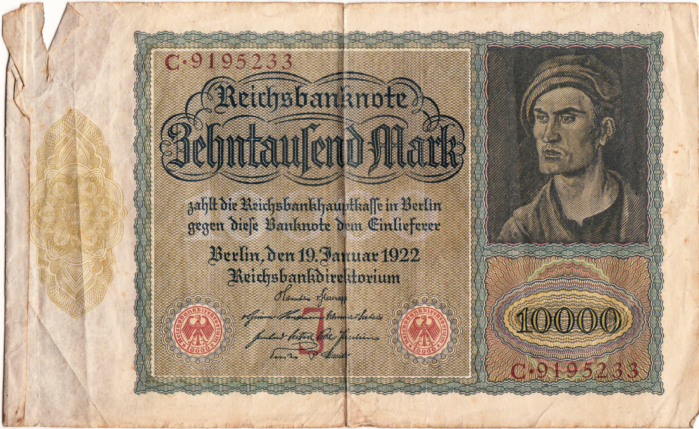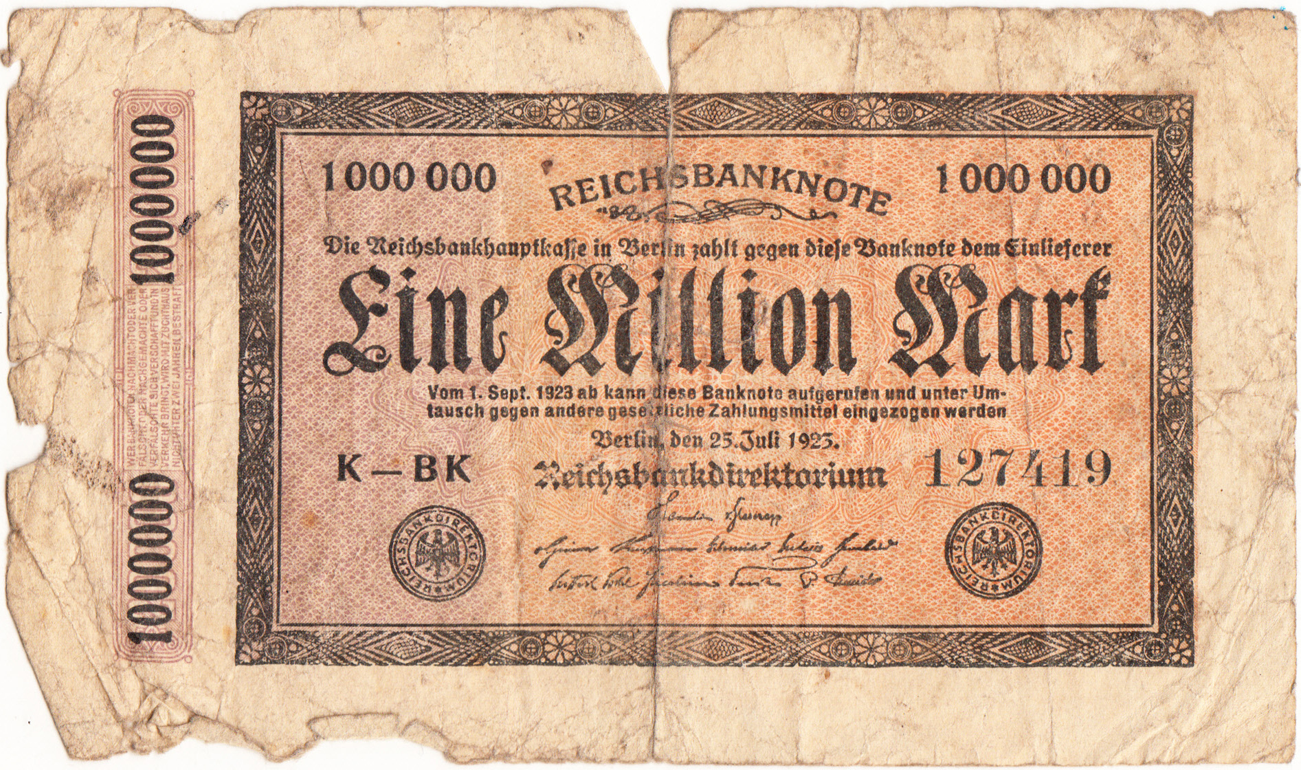 | One Mark Note - 1944 | One Million Mark Note - 1923 | Ten Thousand Mark Note - 1922 | Fifty Million Mark Note - 1923 |