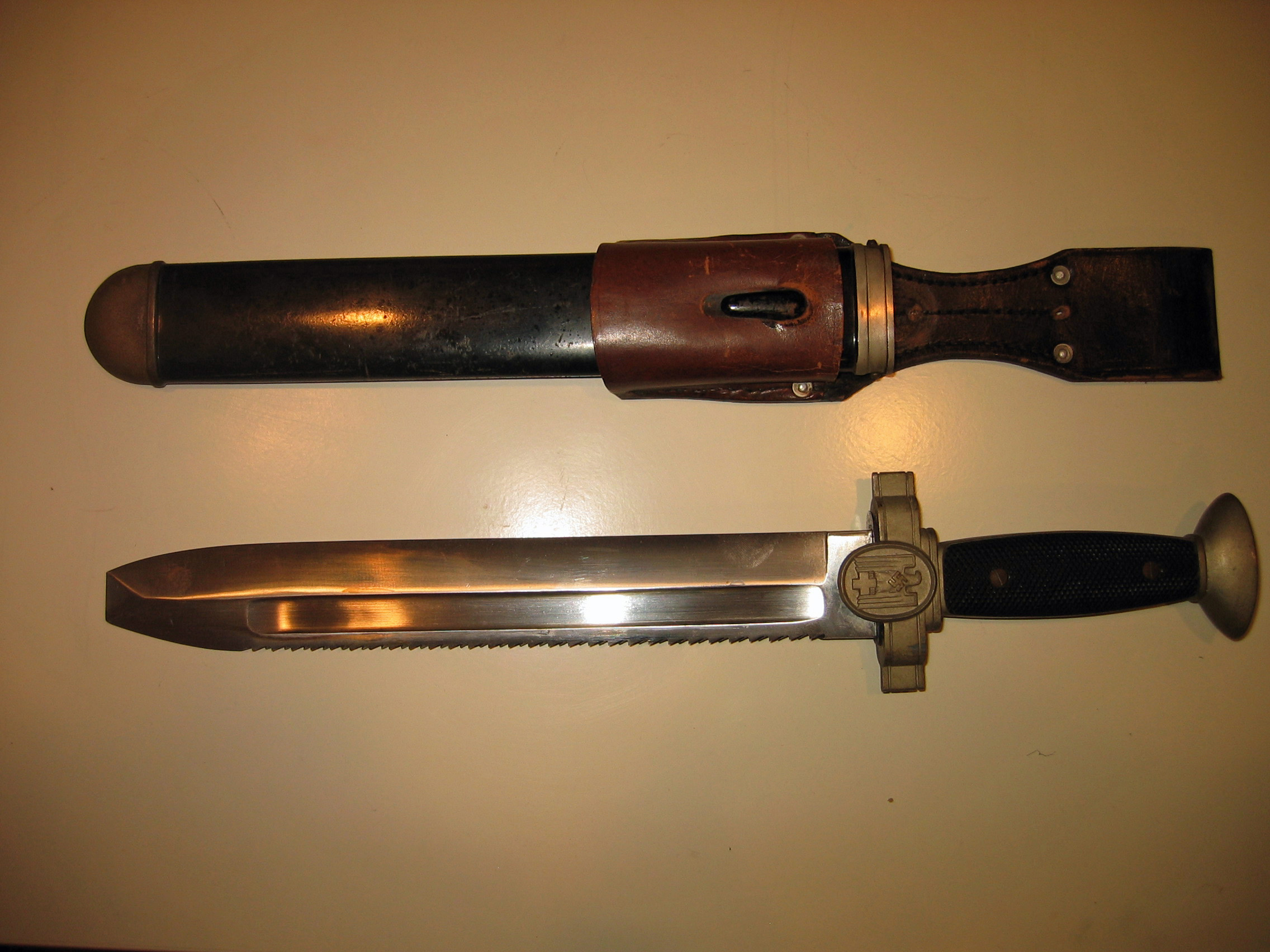 | One Hundred Thousand Mark Note - 1923 | Fifty Pfening (Half Mark) Note - 1944 | WWII Red Cross Paris Map | Social Welfare Dagger |