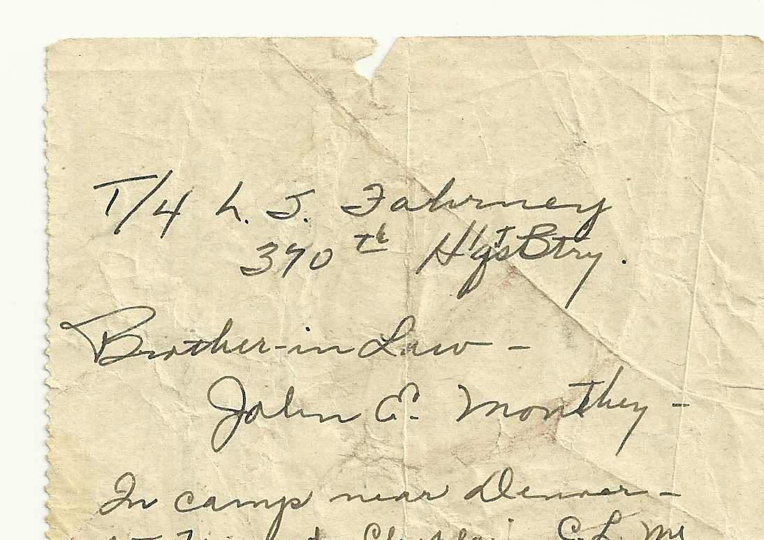 L.J. Fahrney - his sister Betty's husband. "Bud's" unit deployed their location