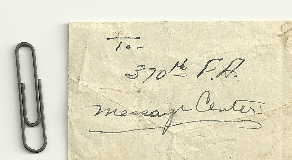 infantry division liberated him. He had sent a handwritten 3"x 2.5" note through