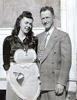 Their relationship was filled with laughter. Within a short while, they did become engaged and according to Ceil, "I received my ring while in the car in the yard out at the farm." I don't know if they got engaged on their way to visit or if they had been at the farm for an evening meal but it led to a wedding at Holy Name church on the 26th of October, 1946. Their first child Sandra was born on November 12, 1947 and the last in line, Philip on September 27, 1960 so the eight children arrived in just under 13 years. |