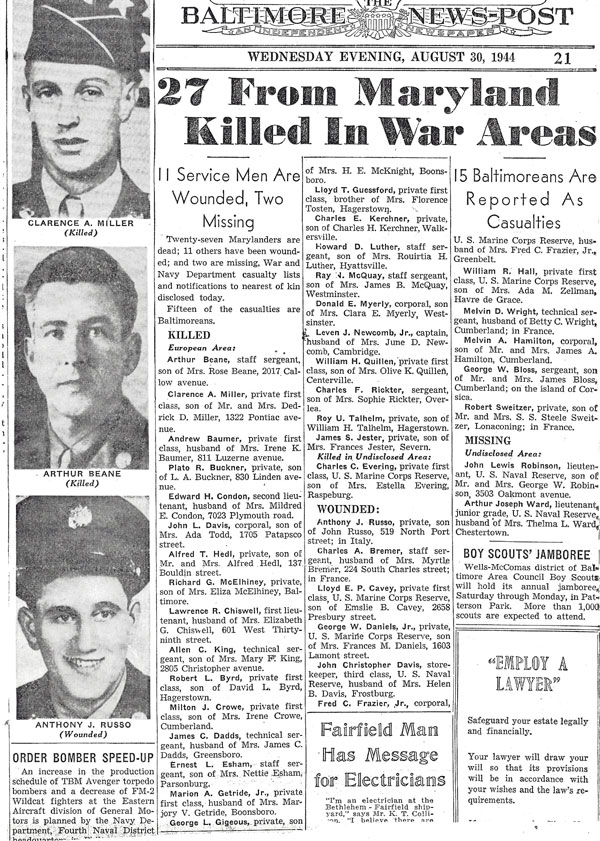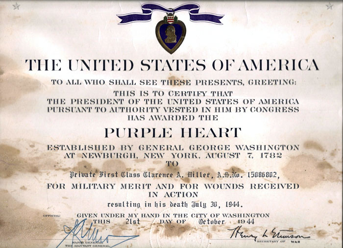 Thanks to Mr. Brian Davis for this information and the photos. Pfc. Clarence A. Miller is Brian Davis' great uncle.