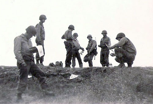 Capt. Donald J. Krebsbach, unknown, Capt. Lloyd D. Gibson, Capt. Glen W. Saddler, unknown, Major Foster H. Weyand, Lt. Col. Alford C. Boatsman