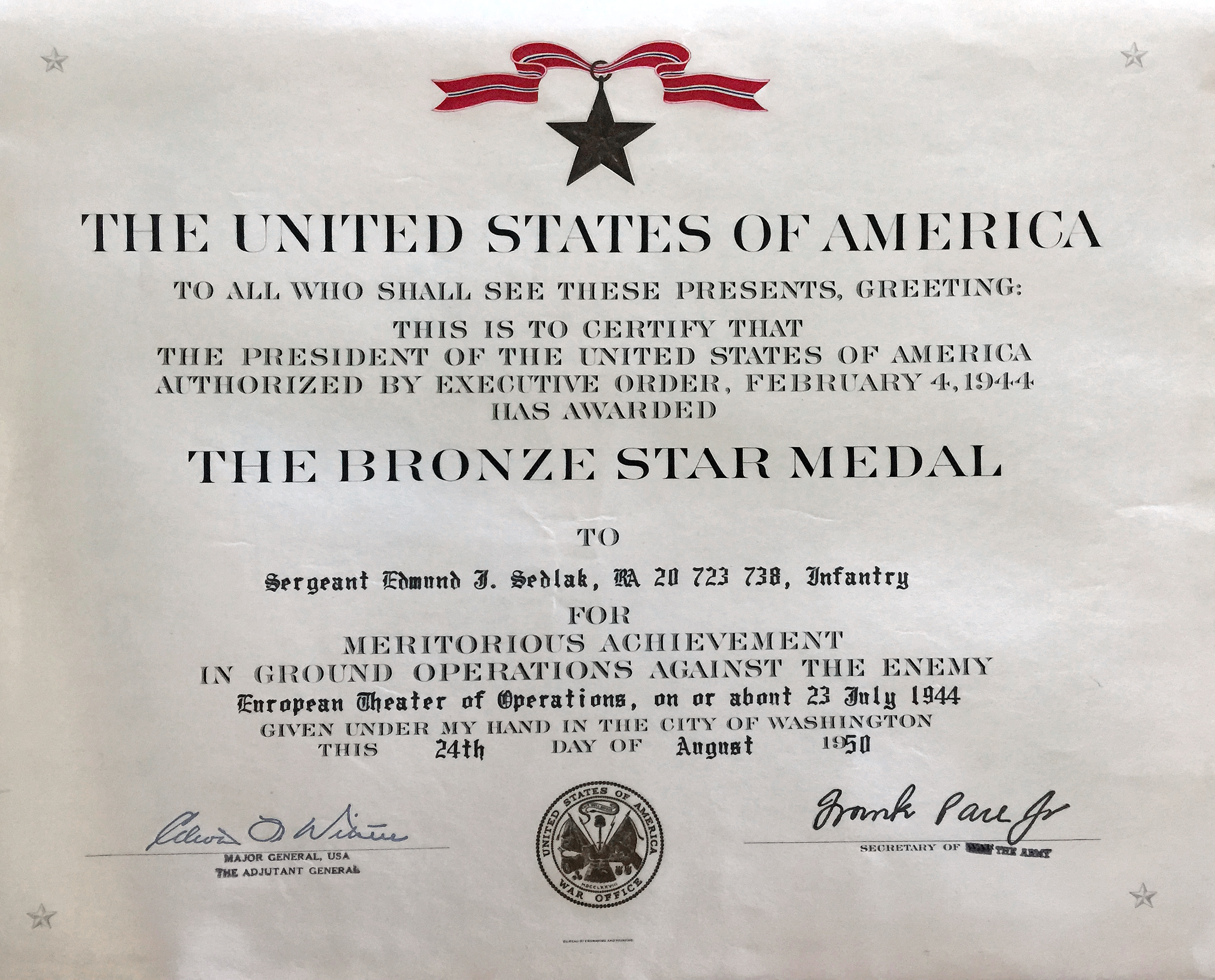 Korean War. He also received a Bronze Star for exemplary infantry action